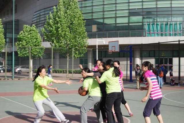 上半场药学院队攻势凶猛,队员年轻气盛、技战术较强,连连得分领先外院。关键时刻焦艳婷老师谓之“满场飞”的王冬焱老师后发制人,连续罚球得1分、带球投篮再得2分。