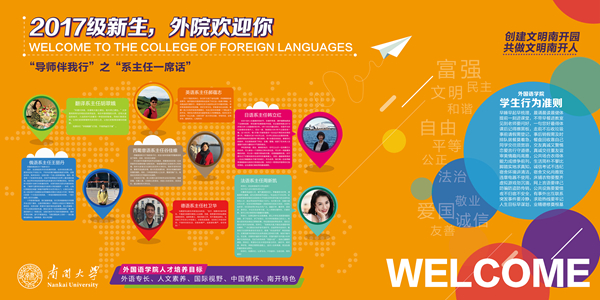 早在新生入学前,学院即通过“NK外院”微信公众号推送了各系主任对新生的寄语,迎新现场,“导师伴我行”之“系主任一席话”的大展板也更加耀目。寄语汇聚了导师对2017级新生的深厚希冀,而在专业介绍会上,专业教师面向学生家长进一步讲解学科实力、师资力量、学生培养等,让家长对孩子未来四年的学习成长有了直观了解。学生和家长纷纷表示,要“学做鲲鹏飞万里,不做燕雀恋子巢”,做到学有所成、业有所专、能有所长、心有所向。