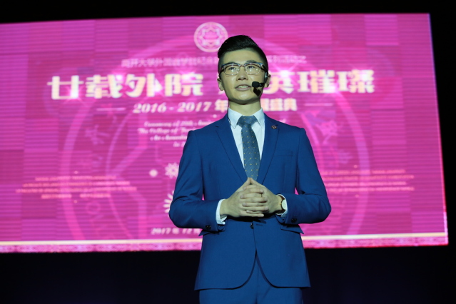 典礼上,“789时代”(7系8语种9专业)的全语种演说串烧处女秀赢得阵阵掌声。各语种的发展齐头并进,欣欣向荣,取得了可喜的成就。过去一学年,外院共有27人次获得国家级奖项,12人次获得大区和市级奖项。未来,他们将戒骄戒躁,为学院带来更多荣耀。