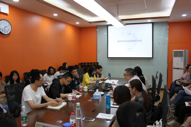 在讲座中,张井先生按其基本功能,将翻译平台划分为翻译交易平台、翻译生产平台、语料数据平台、机器翻译平台等四类,并依据“大众、高频、刚需”等市场化三原则,详细介绍了国内外优秀平台的运行特征和技术优势。