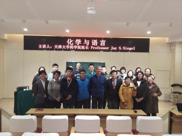 (通讯员 王帅 王凯)近日,天津大学药物科学与技术学院和天津大学生命科学学院院长Jay Steven Siegel教授在伟德APP下载地址学术报告厅做了题为“化学与语言”的专题讲座。讲座由英语系系主任郝蕴志教授主持,来自伟德体育手机app下载和天津大学化学学院、药学院等诸多师生参加。