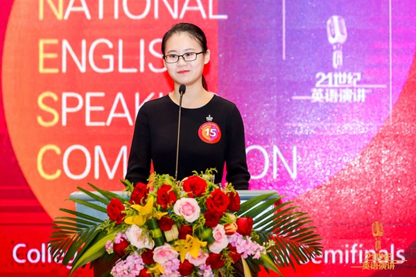 本次全国决赛分为半决赛和总决赛两轮,参赛选手由超过70位来自全国24个赛区顶尖高校的选手组成。竞赛分为定题演讲、即兴演讲和评委提问3个环节。本届全国半决赛的定题演讲题目是“Reform and Opening upA personal perspective”,选手们紧扣主题,以流利的口语和缜密的思维展示英语演讲能力。即兴演讲中,选手们面对随机抽取的演讲话题,在限定时间内,积极思考、展现自己综合的人文素养。评委提问环节,选手们对答如流,对评委提出的问题给出更加深刻的见解。经过两天的激烈角逐,王志怡以优异的成绩晋级全国12强,获得了参加最后一日全国总决赛的入场券。