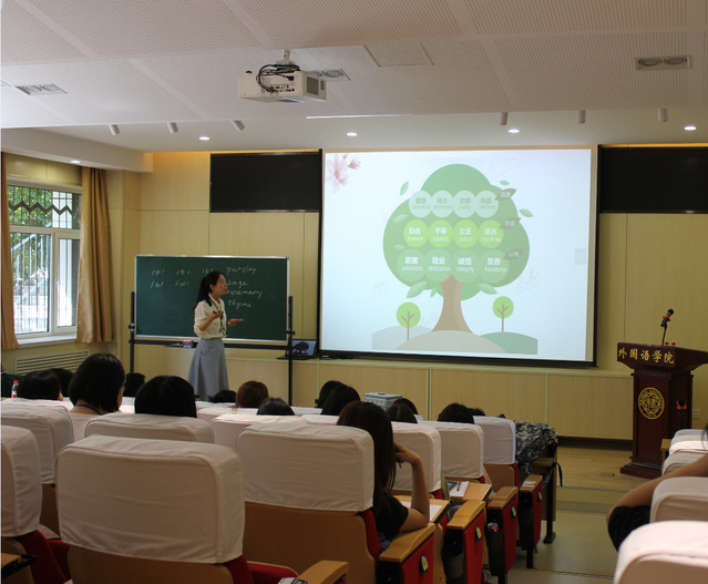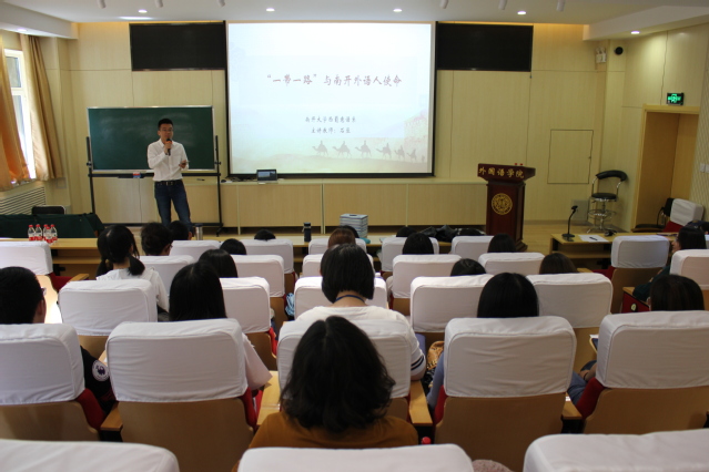 比赛中,英语系张晨以英语语音为主题,分析社会主义核心价值观的语音,与师生展开深入互动;俄语系宋胤男从俄罗斯文学的全人类特点出发,分析了中俄两个文化中的共同点,引出我国提出的“人类命运共同体”的概念及一带一路的倡议,并介绍了中俄文化交往的现状与前景;西班牙语专业龚韵洁从无人称动词haber的用法入手,选取《习近平谈治国理政》中的相关表达为例,结合习近平总书记视察伟德体育手机app下载的重要讲话精神,在教授语法知识的同时,鼓励同学们牢记嘱托,脚踏实地,努力学习;日语系郑琳从“怎样翻译中国特色社会主义相关表达”切入,讲授了中翻日时照搬汉字词的风险以及怎样才能让译文更加自然易懂;意大利语专业石豆以习近平总书记提出“一带一路”倡议及习近平总书记访问意大利的重要讲话为主题,提出南开外语人应当顺势而为,把小我融入大我,助力“一带一路”建设。
