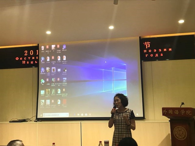 俄语系的16位参赛选手朗诵了普希金、莱蒙托夫、勃洛克、叶赛宁、茨维塔耶娃、西蒙诺夫等诗人的作品,诗歌涉及哲理、自然、祖国、爱情等主题,意蕴深远。纯正规范的发音、声情并茂的朗诵展现了俄语的柔美与力量,传达出诗歌的独特魅力。英语系研究生曹磊、徐恩朵、肖艺林、朱新竹不仅以扣人心弦的英文诗朗诵赢得观众阵阵掌声,更以生动有趣的形式介绍诗歌蕴含的文化背景,现场气氛活跃。除此之外,本届诗歌节还邀请到俄罗斯留学生进行诗朗诵表演。