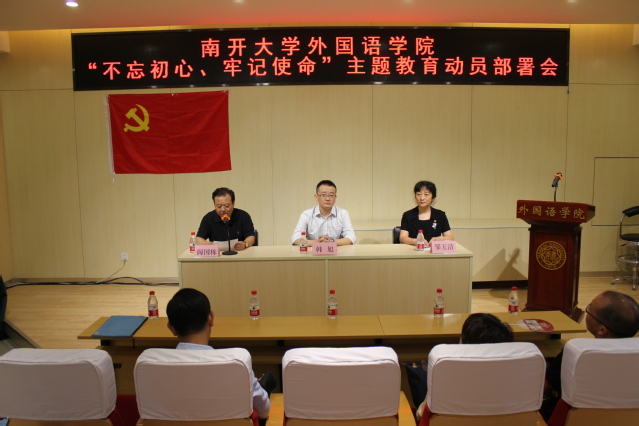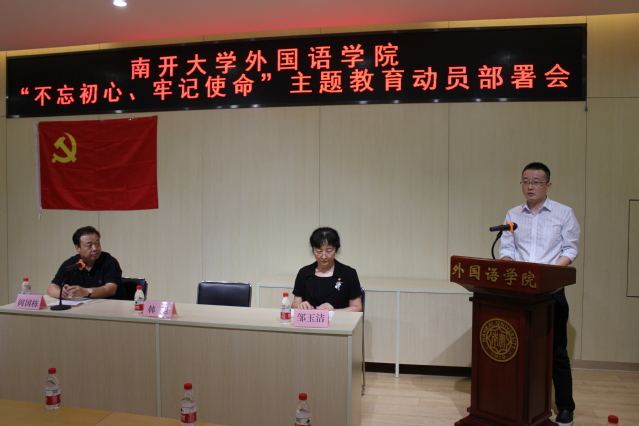 阎国栋在主持会议时指出,全院师生党员一定要深刻学习领会,认真抓好贯彻落实,以开展主题教育的扎实成效,推动学院事业发展,向学校党委交出一份满意答卷,向庆祝新中国成立70周年、伟德体育手机app下载百年华诞和南开外语学科百年献礼。