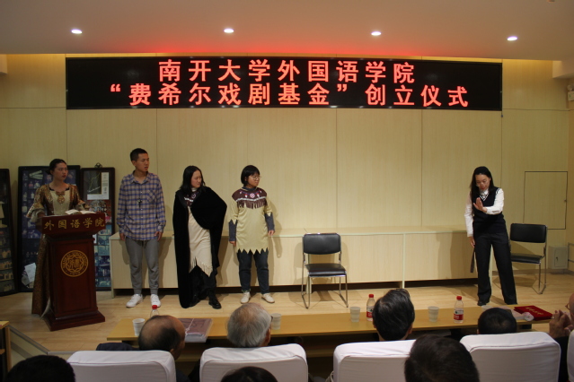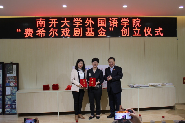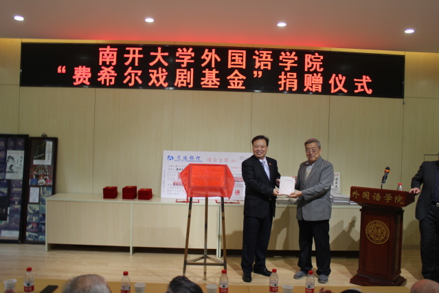 “费希尔戏剧基金”由蔡本红等当年参加外文戏剧表演的学生发起。设立仪式中,阎国栋和费希尔为基金揭牌,校友代表向学院递交了捐款支票217825元,阎国栋为基金捐赠者颁发捐赠证书。阎国栋在致辞中提出,戏剧是丰富和补充外语教学的重要环节,是学科发展的重要手段。继费希尔先生开创海外表演中国戏剧之后,伟德体育手机app下载日语系、俄语系学生剧团相继在国内外演出,这是中华文化“走出去”的一大创举。“费希尔戏剧基金”的创立具有重要意义,希望伟德APP下载地址师生共同努力,续写南开享誉四海的戏剧传统。他赞扬了校友们心系外院发展和反哺母校的精神,希望发扬学生剧团的号召力、影响力和凝聚力,延续伟德betvlctor1946体育的戏剧表演血脉。
