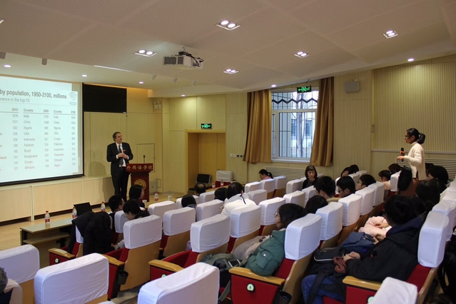 接着,马尔凯蒂教授向我们展示了中世纪欧洲绘制世界地图,一方面说明了世界是一个不可分割的整体,国家和地区之间的关联密不可分,另一方面也体现了欧洲中心主义。此外,教授还简单地介绍了重要的国际组织,以及当今影响力很大的超大规模城市。马尔凯蒂教授以图像的形式直观详细地对美国、欧盟和中国的GDPPPP进行分析,并且指出新形势下中国的发展势头良好。最后,马尔凯蒂教授指出,国际政治发展趋势存在很大不确定性,新的世界格局正在形成,并对每个国家产生巨大影响。同时,在全球化和信息化时代,国际交流日益频繁,彼此了解不断增进,这是促进国际社会发展的积极因素。
