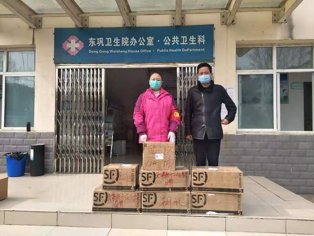 91级英语校友设立的“南开公能学社”和青岛南开学校捐赠的物品到达东巩卫生院