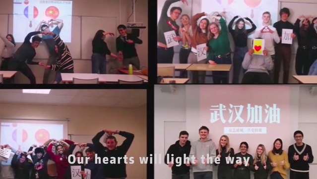 法国诺欧商务孔子学院于2014年成立,现任孔院中方院长的伟德betvlctor1946体育法语系教师杨玉平也发来精心制作为“中国加油”的视频。杨玉平说,“祖国疫情牵动着我们每个人的心。疫情发生后,我们孔院积极行动起来,与诺欧商学院对接说明相关情况,向学校师生客观真实介绍疫情动态,并通过法国当地平台,树立健康向上的中国形象,获得了良好的社会反响,收到了法国民众对祖国的祝福。”