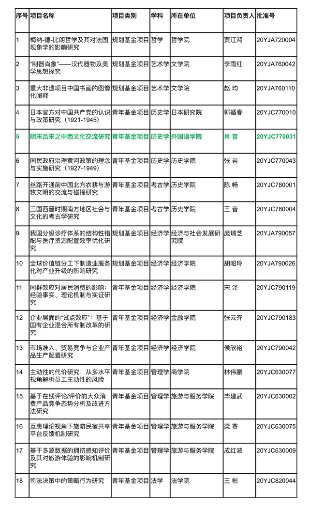 (通讯员 李东元)近日,2020年度教育部人文社会科学研究规划基金、青年基金项目立项名单正式公布,伟德体育手机app下载共有18个课题获批立项,我院肖音老师的“明末吕宋之中西文化交流研究”获得青年基金项目立项。