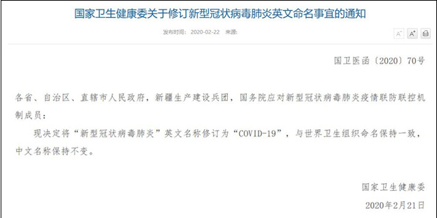 “各位老师,这个病毒是翻译成新冠肺炎病毒还是统一使用英文名‘COVID-19’?”