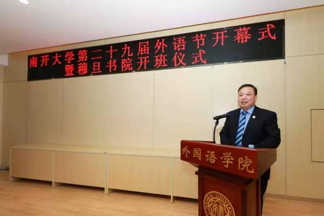 王新生现场宣布外语节开幕、穆旦书院正式开班,他在致辞中勉励师生以穆旦书院为平台,创新探索新文科建设,积极构建“师生共同体”,使之成为具有鲜明特色与文化传承内涵的新型育人阵地,师生互助、教学相长。