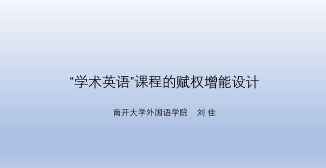 刘佳老师以《“学术英语”课程的赋权增能设计》为题,从课程现状、教学目标、教学原则、课程内容和课程评估五个方面对“学术英语”课程的赋权增能设计进行汇报。该课程设计坚持“角权责统一、做学用合一、教师主导和学习者主体”教学原则,融合共性内容和个性化内容,采用终结性评估和过程性评估相结合方式,以达成在个性化学习和实践中逐步评估学术英语素养和综合应用能力的目标。