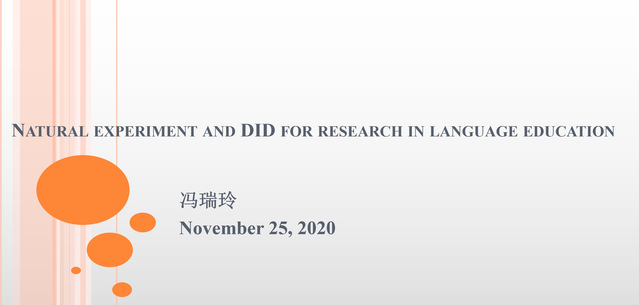 冯瑞玲老师的汇报题目为《自然实验与双重差分法在语言教育研究中的应用》。在汇报中,她深入浅出阐述了自然实验设计理念、估算方法以及核心假定,以及自然实验和双重差分法与语言教育研究的结合点,并提供了高质量网课、学术专著等丰富学习资源供师生自学。冯老师指出,相比随机实验,自然实验具有经济实用、不涉及伦理问题、能更准确推断因果关系等多重优势,其可用于教学改革和语言政策研究,能够拓宽学术研究视野和学术发表的期刊选择范围。