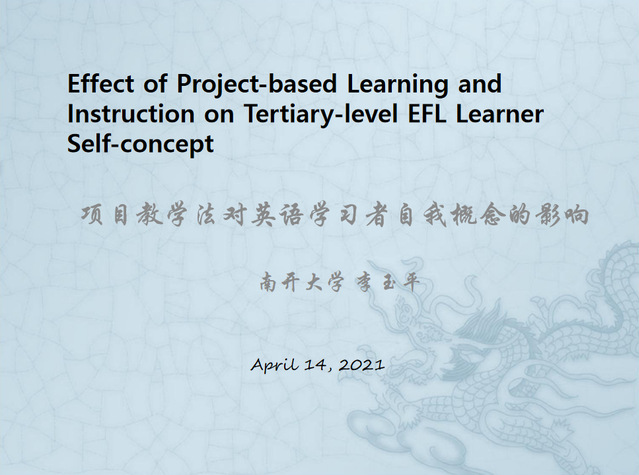 第二位汇报人李玉平博士的汇报题目为“项目教学法对大学英语学习者自我概念的影响”。李玉平对自我概念和学习者自我概念等定义进行了详细的介绍,并以此为理论框架研究中国英语学习者自我概念的内在结构和依托项目的英语学习(PBLI)对中国英语学习者自我概念的影响。其实证研究结果显示中国英语学习者自我概念内在结构主要分为制度化层面和个性化层面,并且PBLI的实施有助于提高学习者的自我概念认识清晰度。