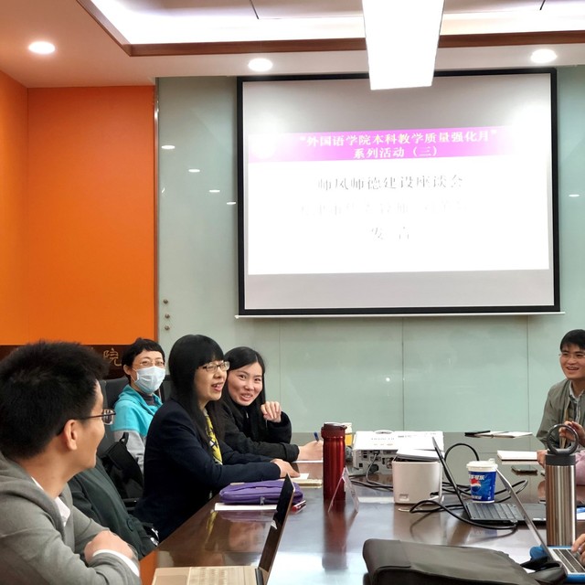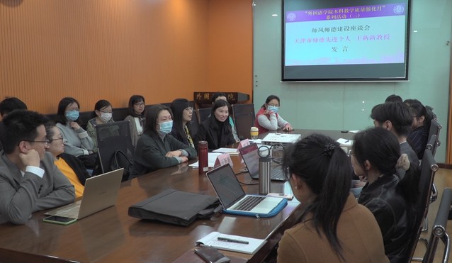 天津市优秀教师,英语系博士生导师刘英教授首先和青年教师分享了自己从教20多年在教学科研一线取得的一份份实绩,立德树人,堪称楷模。在科研上,硕果累累,曾经获得国家社科重大项目及国家、省部级立项,发表专著3部,论文50篇,其中CSSCI论文30篇,2次获得天津市社科优秀成果奖。在教学上,从本科生到硕士生、博士生、博士后,多年来培养出一批批优秀人才。科研和教学互相促进,良性循环。
