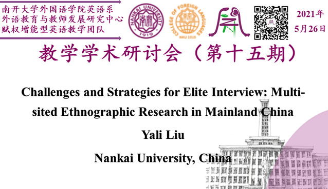刘雅丽汇报的题目是“Challenges and Strategies for Elite Interview: Multi-sited Ethnographic Research in Mainland China”。她结合自己与五省市自治区十所高等院校的53位非通用语种教师的实地访谈经历,介绍了在多点民族志的质性访谈中研究者如何从内部人/外部人视角实现研究者身份动态定位以及系统监督管理研究者自身主观性,从而提升质性数据的真实性与可靠性。她提出了研究者三层动态定位框架和研究者主观性分析框架,对质性研究方法论发展具有较大借鉴意义。