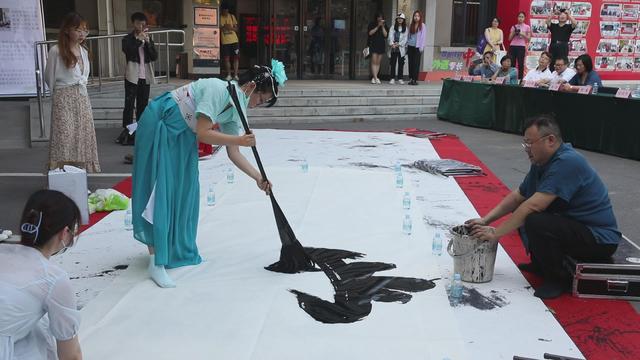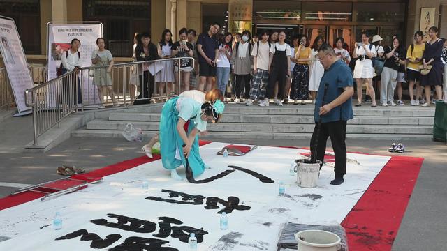 青年书法家唐曼清校友应邀参加并现场泼墨挥毫,创作了“初心”、“党魂”、“以体育人”、“为中华崛起而读书”等四幅书法作品,并在现场举行了捐赠仪式。