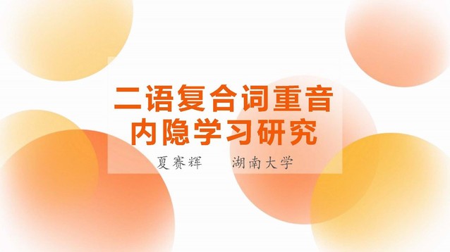 夏赛辉博士以《二语复合词重音内隐学习研究》为题,就该课题的研究背景、研究现状、研究设计、结果与总结和未来研究进行了解释与分析。