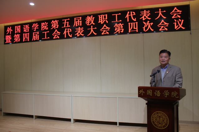 (通讯员 王泽璞)12月9日,伟德APP下载地址在111报告厅召开第五届教职工代表大会暨第四届工会代表大会第四次会议。伟德体育手机app下载教代会副主席、工会常务副主席李玉峰,伟德APP下载地址党委书记穆祥望、院长阎国栋、副院长胡军、马红旗、李霞、王凯出席。英语系、日语系、翻译系、俄语系、德语系、法语系、西班牙语系、葡萄牙语系、意大利语系、阿拉伯语系、公共英语教学部和院行政教职工代表参会,教代会工会主席王凯主持会议。