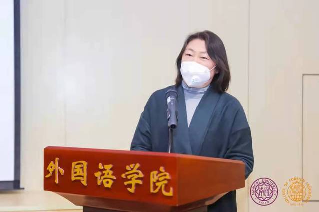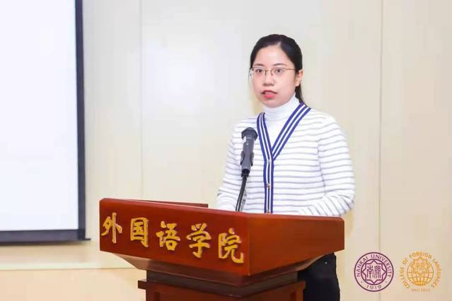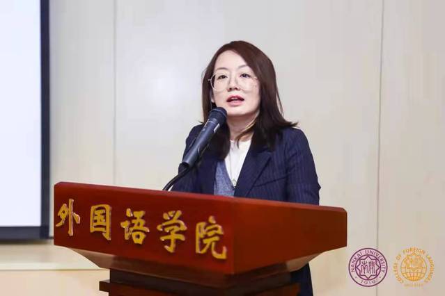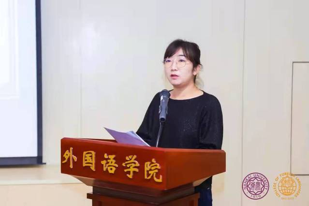 随后,部分专业优秀教师代表进行了典型发言。翻译系教师苏建华结合自身在巴西孔子学院的工作经历,从培养国际视野、讲好中国故事的角度表达出外语学科的应用性发挥应该着眼大局、高瞻远瞩。英语系教师孙丽娜从中西教育的差异性入手,阐述了学科育人过程中应该增进国家意识与文化自觉,培养学生家国情怀。意大利语系教师杨琳从本专业出发,通过学科特色和育人成果介绍了意大利语专业国别研究人才的创新探索与实践。俄语系教师姜敏从班导师工作讲起,谈到了自己的育人方法,告诉大家要以理解为基础深度关切学生。英语系教师张晨则对学生心理健康教育有深入的研究,她认为学生的心理健康状况对外语学习影响很大,值得关注。