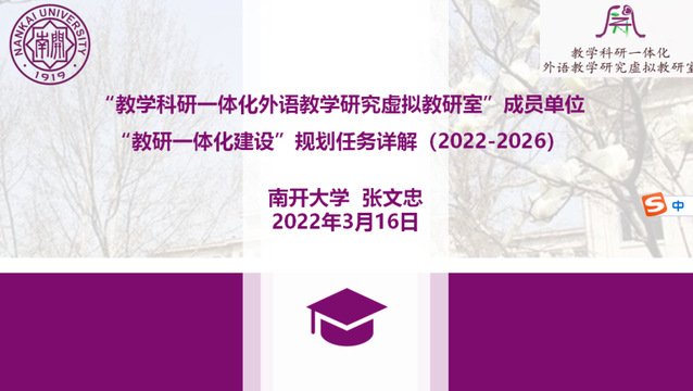 (通讯员 王冬焱)2022年3月16日晚7:30,教育部教学科研一体化外语教学研究虚拟教研室首期工作会议于线上举行,主题为“研讨教学科研一体化建设规划”。本虚拟教研室由伟德体育手机app下载赋权增能型外语教学团队发起,获得国内高校5位副校长和27位院长的大力支持,从最初东、中、西部50校76人参与申报,至今已扩容至包含130个成员院校,约700名骨干成员。