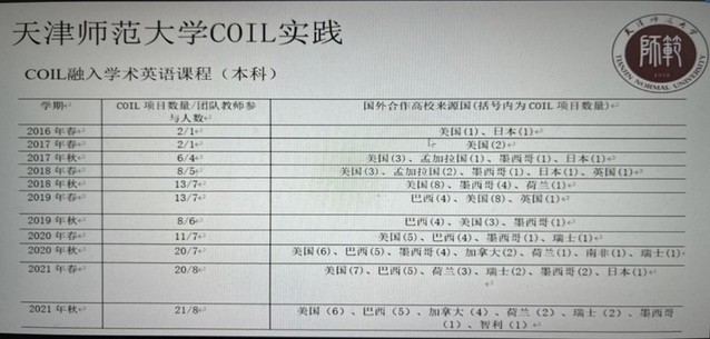 在主题报告环节,天津师范大学伟德APP下载地址副院长李艳玲教授首先介绍了COIL项目的总体情况和团队的各项工作。截止到2022年3月,天津师范大学COIL项目的合作单位已遍布五大洲,与11个国家的27所高校合作完成了124个在线协作教学项目,2022年春季学期有11个项目即将或已经开始运行。COIL这一新型教学模式不仅使学生拓展了视野,还能激发其学习兴趣和活力;教师也在COIL项目的运行过程中,接触和吸收国外前沿的、优质的教学理念,在教学实践中实现教师专业发展。李艳玲教授特别指出,这种跨国协作教学模式切实践行了赋权增能理念,师生都能从中获益匪浅。
