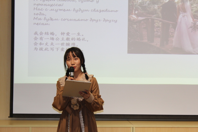 王丽丹在总结发言中表示,俄语诗歌节是俄语系的传统活动,至今已成功举办五届,她对本届参赛选手的表现给予了充分肯定和高度赞扬。王丽丹指出,每一组选手都有各自的特点,所选取的诗歌都很经典,在朗诵中流露出真挚的情感。此外,她还特别强调“诗心”的重要性,鼓励学生们努力学好本专业,将俄语作为未来的择业方向。
