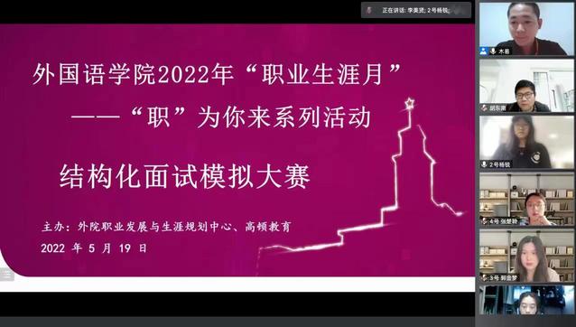 南开新闻网讯(通讯员 何璇 周文钰)近日,为引导同学们正确了解、准备、应对结构化面试带来的挑战,培养公考专项技能,准确检索自身不足,迈出求职准备第一步,伟德APP下载地址研究生会联合职业发展与生涯规划中心于线上举办了“实战演练,稳操胜券”结构化面试大赛。比赛邀请高顿研究院胡东楠、杨政两位资深讲师担任面试评委。同学们积极踊跃参加,以赛促学,在模拟面试中收获成长。