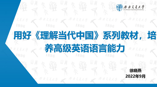第一位主讲人徐晓燕教授的报告题目为“用好《理解当代中国》系列教材,培养高级英语语言能力”。徐教授指出《理解当代中国》系列教材能够帮助学生了解国家政策和发展,更好地向世界介绍中国;其选文呈现时政文体特征,词汇和句法难度较大,也存在学生无法胜任教材学习的问题。对此,徐教授提出将该系列教材中的具体单元内容嵌入到现有课程中,让学生熟悉包括时政文体在内的多种文体特征,并在教师精心设计的学习任务中,提升学生的高级英语语言能力,重视学生语言基本功、语法思维和英汉认知概念转换的训练,促成语言学习的真正发生。