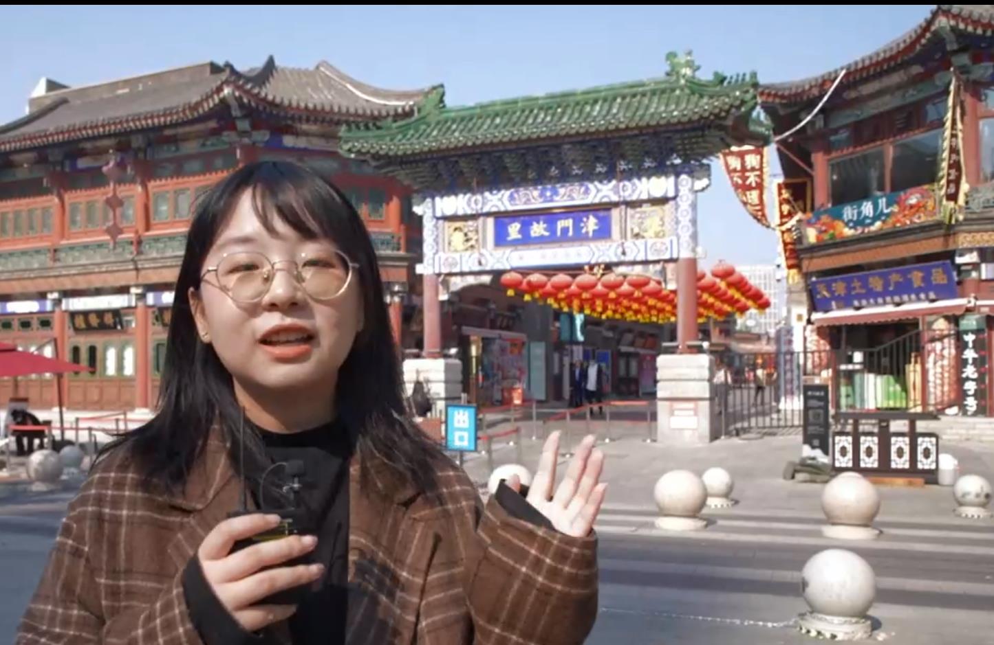 随后线上师生们浏览了伟德体育手机app下载所在城市天津的景色和具有天津特色的美食小吃。从天津五大道、古文化街到天津港;从煎饼果子,茶汤再到糖炒栗子,糖葫芦;通过镜头和生动的讲解让线上师生们从人文景观、历史建筑、城市建设、风土人情和市井文化等多角度领略到天津的文化底蕴和现代国际化大都市建设发展的时代风采。