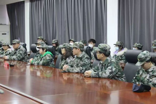 交流结束,党员师生们着迷彩绿,迅速下楼集结,开启红色之旅。在研究生辅导员周文钰的带领下,全体党员重温入党誓词,在铿锵誓言再忆入党初心,加强党性修养,不断激发作为一名共产党员的责任感和使命感。