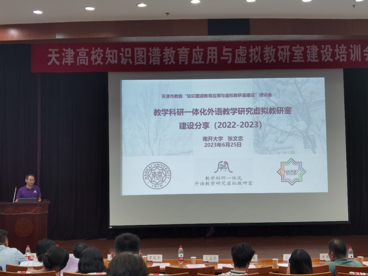 (通讯员 时雨)2023年6月25日,由教育部重点领域办公室、天津市教育委员会主办的天津高校知识图谱教育应用与虚拟教研社建设培训会在伟德体育手机app下载召开。国家虚拟教研室负责人、伟德betvlctor1946体育张文忠教授应邀分享“教学科研一体化外语教学研究”虚拟教研室建设经验。