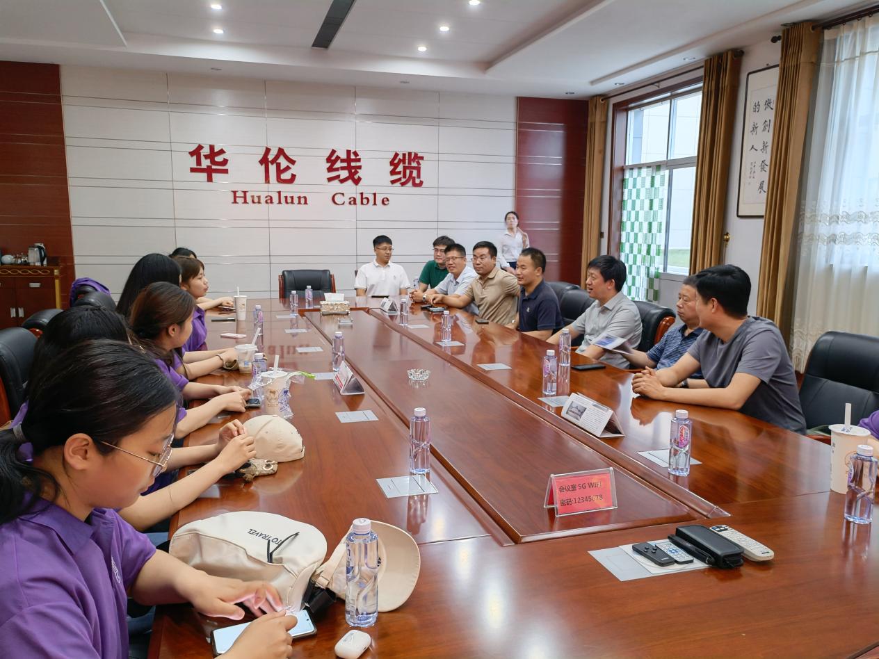 参观完烈士纪念馆之后,外文剧社一行又来到南开校友、河间市青年企业家商会会长马宁任董事长的河北省华伦线缆公司进行参观学习。河间工业基础雄厚,已形成电线电缆等四大优势产业,近年来,线缆产业与现代化数字经济等新技术相结合,形成了可溯源、信息化、不断升级的产业结构,向大家展现了新时代河间工业发展的昂扬面貌。马宁校友不仅为外文剧社在河间开展活动提供交通工具,还在公司热情欢迎大家的到来,介绍企业生产情况和未来发展前景。