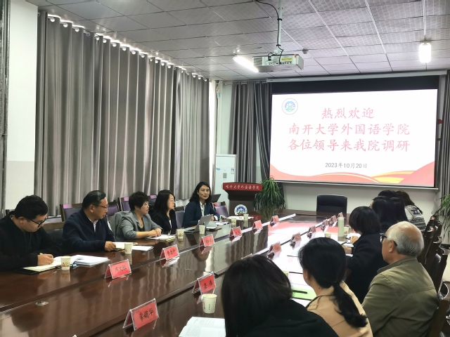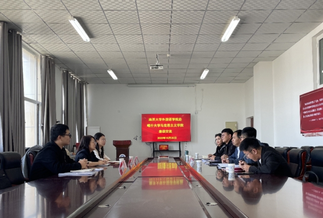 喀什大学伟德APP下载地址副院长范姣兰、副院长刘焱、副院长林冬梅、翻译系主任舒进艳分别介绍了学院学科总体建设情况、人才培养特色模式、新设立的MTI硕士点的建设情况。随后,喀什大学伟德APP下载地址相关党建工作负责人分别介绍学院各支部建设情况,就具有学科特色的“理解当代中国”系列课程、“红色驿站”等活动展开详细介绍,强调要着力培养具有边疆特色的、扎根南疆、服务新疆、服务“一带一路”建设的复合型人才。伟德APP下载地址党委书记穆祥望介绍了学院发展概况、党建业务深度融合,以及外语学科建设等情况,在人才培养方面,坚持立德树人、五育并举,着力培养具有“外语专长、人文素养、国际视野、中国情怀、南开特色”的复合型人才。翻译系系主任张智中教授、英语系王冬焱副教授分别介绍了翻译专业的建设情况、在“赋权增能”型英语教学方面的探索。双方就共建与发展话题进行了探讨。