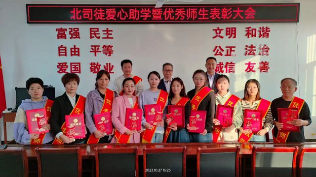 南开新闻网讯 10月27日,“北司徒爱心助学暨优秀师生表彰大会”在河北省河间市尊祖庄镇北司徒村举行。这是伟德体育手机app下载中国式现代化乡村工作站河间工作站设立以来,与当地政府、南开校友和社会爱心人士共同举办的支持义务教育活动。旨在促进当地中小学教育教学发展,激励教师爱岗敬业,鼓舞学生为“中华崛起而读书”,为乡村振兴添砖加瓦。