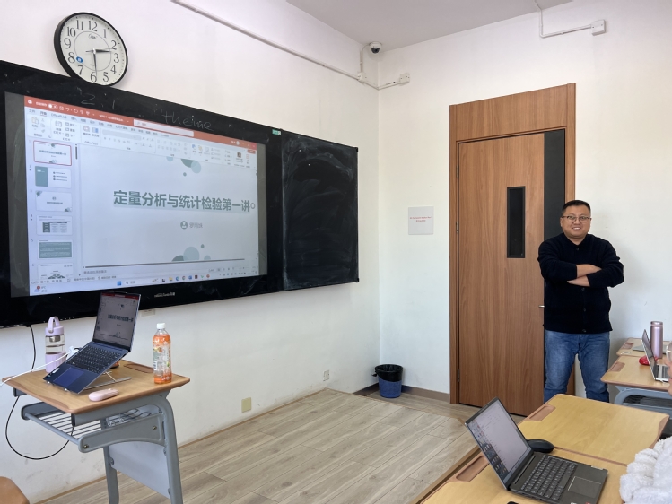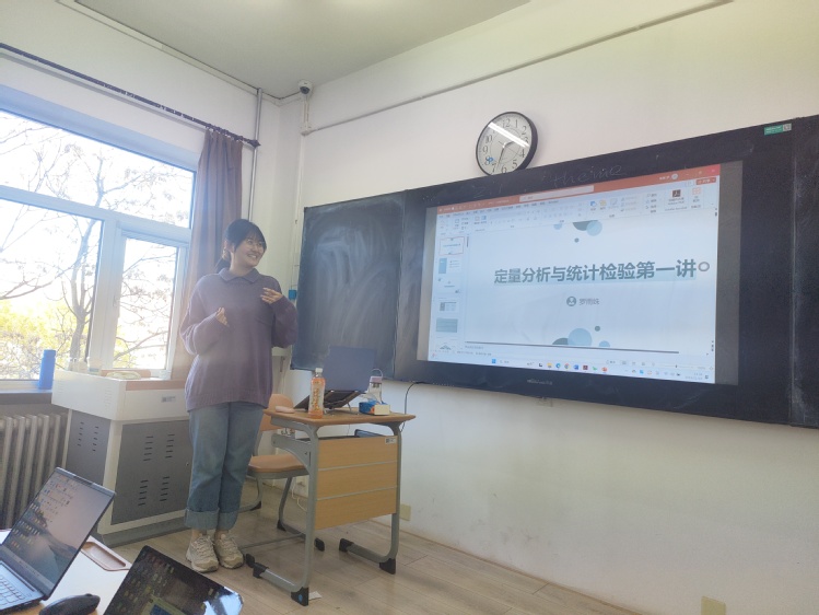 在互动环节,罗雨姝回答了老师和同学们提出的问题,对论文汇报中的数据调整、检验过程中的注意事项等提出了建议。最后,李民教授做总结发言。他指出,定量分析是语言学发展的大趋势,如何结合研究需要收集数据、选取适合的检验方式、做预先检验和事后检验等在结果产出中至关重要,直接关系到论文汇报的可信度和准确性。罗雨姝同学今天介绍的卡方检验和T检验,不仅能进一步拓展学术视野、深化研究方法,而且对论文写作具有重要意义。本次工作坊持续两个小时,内容丰富,与会师生均表示受益良多。