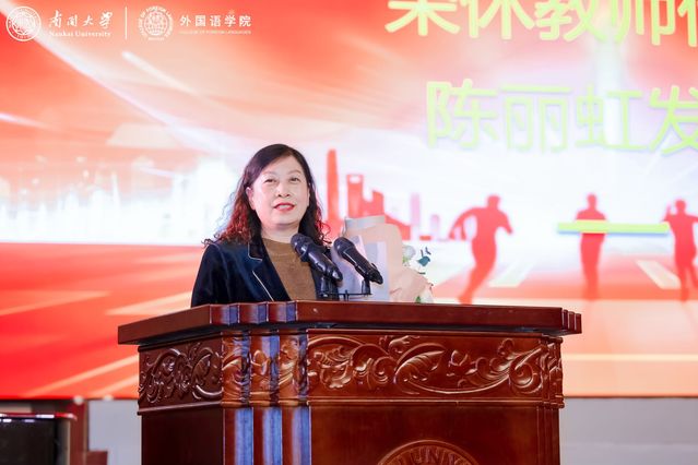典礼过程中,荣休教师代表陈丽虹老师深情回顾数十年从教经历,祝愿外院师生学习生活日新月异,勉励南开人接续奋斗,营造欣欣向荣的校园文化氛围;翻译系张强老师作为教学育人贡献奖代表发言,他表示,文章既要能写在中国的大地上,也要写在世界的大地上,要坚持研究实干,满怀人文关怀,不断前行。