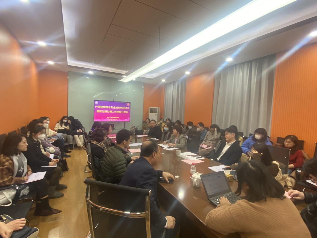副院长王凯回顾总结了本学期的本科生班导师工作和新生研讨课导师工作情况,学院坚持“小班”班导师,所有教学班全覆盖,以65人庞大的本科班导师体系,以“有图有相,群内多分享”的工作方式,逐步形成了”混合穿插见成效”和“分类管理更精确”的工作特色;在新生研讨课导师工作方面,16位导师以自己的学术专长和人格魅力,通过读书分享会、团建、共同健体强身等方式,为新入学近240名学院新生规划学业,指导学业,答疑解惑,引导人生航向。两项工作虽自成体系,高质量推进,又深度交叉融合,在三全育人中取得了显著成效。