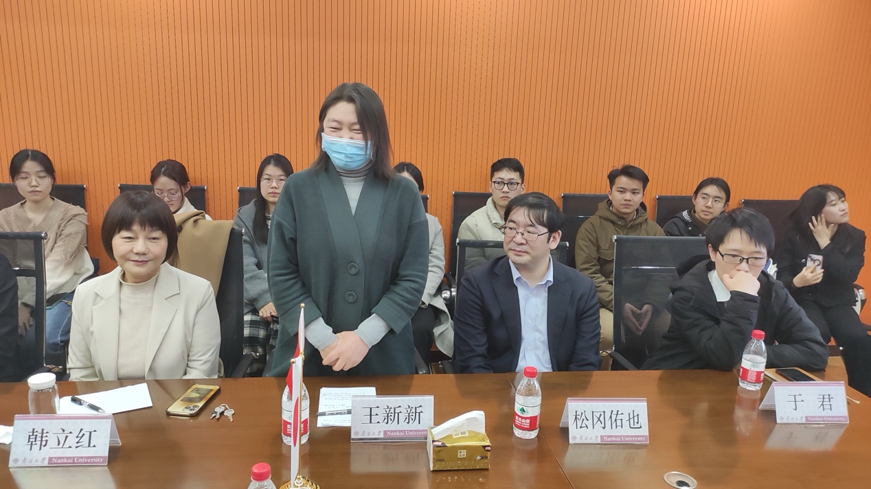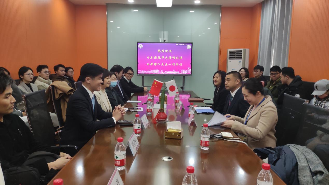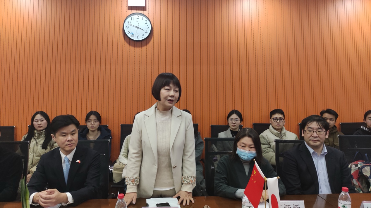 日语系副系主任王新新教授在致辞感谢中强调了语言交流的重要性,并希望可以通过公使的此次访问,进一步促进双方交流与合作。