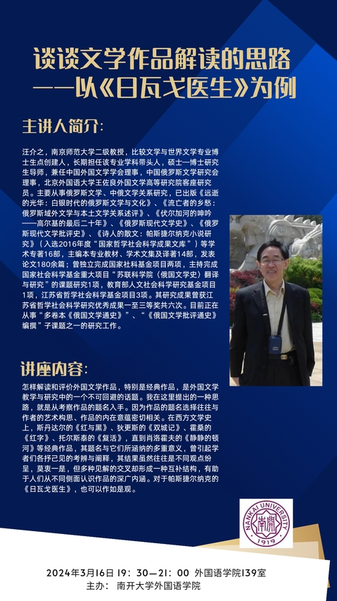 谈谈文学作品解读的思路——以《日瓦戈医生》为例