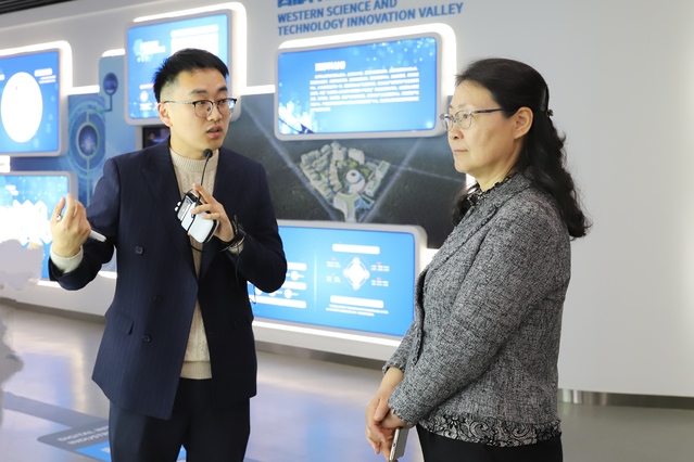 浙江省杭州市临安区宣传部部长孙超在参观前会见了我校一行,并对我校一行来访表示欢迎。南开浙江校友会会长、浙江众合科技股份有限公司董事长潘丽春带领赵美蓉一行参观了众合科技展厅,介绍了公司“智慧交通”“泛半导体”“产业数智化”“大健康”四大战略经营单元的发展历程、产业布局和应用情况