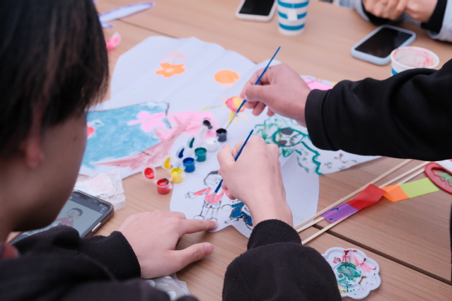 活动伊始,主持人介绍了本次活动的流程及有关风筝的文化知识,通过抽签方式,参与者被分配成各个小组,进行猜图游戏及风筝制作。每支队伍通力合作,完成风筝的组装及绘制,同学们将春花美景、卡通形象、国家文化等绘于风筝之上,制作现场其乐融融,各个风筝也独具特色,展现了创新精神与传统文化的交相辉映。整个过程不仅加深了同学们对不同文化的理解,同时也锻炼了中英文语言能力。