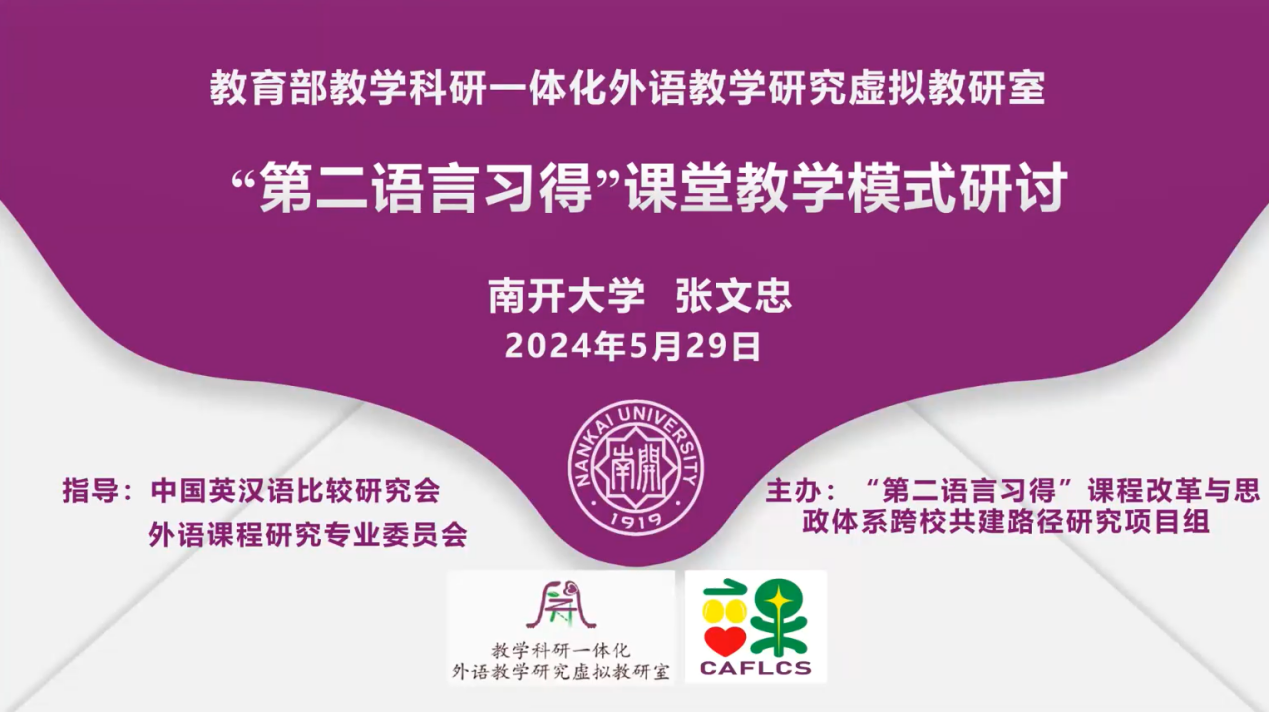 (通讯员 王冬焱)依托教育部教学科研一体化外语教学研究虚拟教研室,由2023年天津市高等学校研究生教育改革研究计划立项项目“‘第二语言习得’课程改革与思政体系跨校共建路径研究”教改项目组主办,中国英汉语比较研究会外语课程研究专业委员会、伟德betvlctor1946体育外语教育与教师发展研究中心指导的“二语习得”课程教学模式与改革虚拟教研活动529日晚于钉钉平台成功开展。
