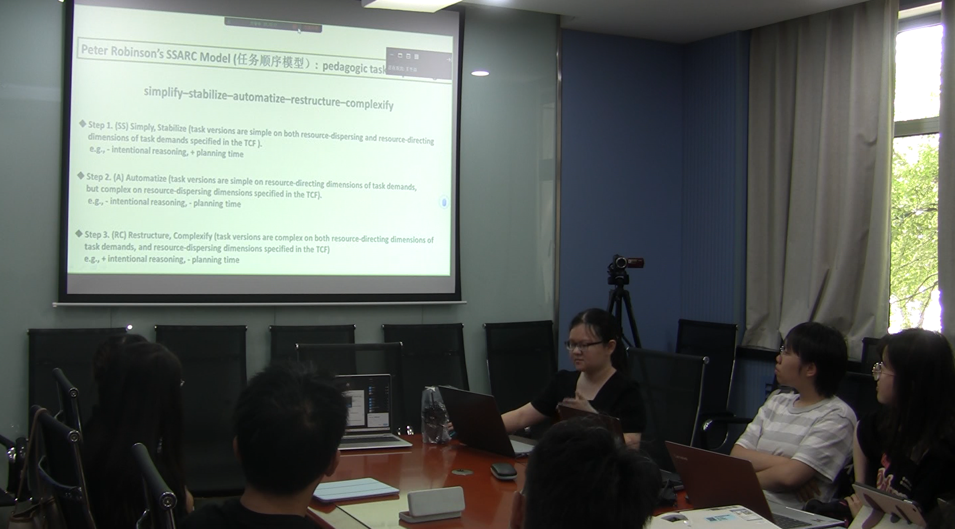 本节课教学主题为“二语习得中的隐性教学”,主要由伟德体育手机app下载课程组师生完成课堂的组织与展示,其他两校师生观摩并参与课堂讨论。课程伊始,伟德体育手机app下载研究生首先就此主题进行报告与讲解,并提出思考问题与在场同学开展交流。学生就课程主题进行深入讨论,任课教师总结、点评后,作为“与谈人”的另一学生提出并阐述与章节内容相关话题及讨论问题,就此与同学进行进一步深化课程主题的讨论与交流。课程最后,四位任课教师分别给出了中肯而具有启发性的点评。