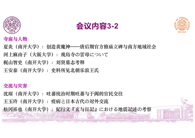 会议期间,与会专家代表就中日古代史中的政治、财税、佛教、军事、外交等学界前沿课题,以古代为起点,穿越中世和近世,开展了广泛且深入的讨论,互相刺激启迪,获得圆满成功。