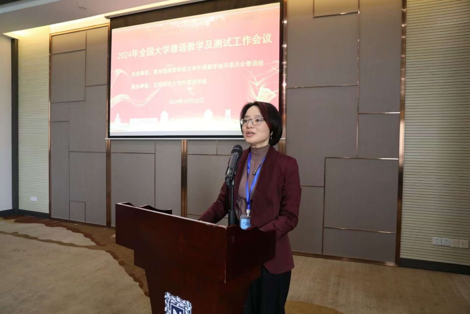 (通讯员 刘冠龙)10月18日至20日,2024年全国大学德语教学及测试工作会议在沈阳师范大学举行。沈阳师范大学党委常委、宣传部部长邵永运代表学校出席会议并致辞,教育部大学外语教学指导委员会德语组组长赵劲出席会议并讲话。教育部高等学校大学外语教学指导委员会德语组委员,来自全国31所院校的德语教师代表,高等教育出版社、外语教学与研究出版社、上海外语教育出版社、同济大学出版社等出版界代表出席会议。此次会议由教育部高等学校大学外语教学指导委员会德语组主办,沈阳师范大学伟德APP下载地址承办。