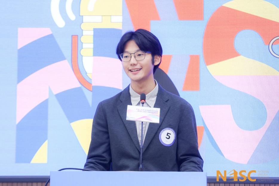 刘钰岐同学亦凭借出色的表现赢得了观众和评委的认可。他在定题演讲中巧妙引用了丘吉尔的“We Shall Fight on the Beaches”演讲,深入探讨了如何在困境中坚持不懈,以及培养批判性思维的重要性。在即席演讲环节,刘钰岐以提问激发观众兴趣,分析了宠物与当代年轻人婚恋观之间的联系。在面对评委提问时,他表现得从容自信,充分展现了对当代社会的独特见解。