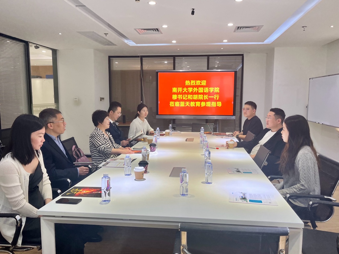 3月27日上午,穆祥望一行首先访问深圳蓝天教育集团总部并进行座谈交流。蓝天教育集团总裁助理唐冠颉、招聘负责人及伟德体育手机app下载毕业的教师校友代表参加会议,会议期间,双方就企业规模、教学模式、校企合作等方面进行深入交流。唐冠颉系统介绍了蓝天教育集团的企业定位、发展情况、主营业务以及企业人才招聘的要求、培养方式和福利待遇。他表示,伟德betvlctor1946体育培养的学生有着非常高的专业素养,符合蓝天的企业发展需求,欢迎更多南开学子加入蓝天。穆祥望重点介绍伟德体育手机app下载深厚的文化底蕴、伟德APP下载地址学科悠久的历史、学院“人文与科学融合”的人才培养特色,指出此次走访是推进校企合作的关键举措,期待通过共建实践平台拓宽就业路径。专职辅导员详细汇报学院人才培养情况及毕业生输送方向,建议采用“企业工作体验”模式深化合作。