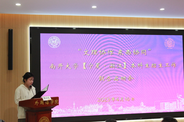 招生工作组教师代表程梅、学生志愿者代表张启乐分享了在招生工作中的工作体会,并表示今年将继续为南开招揽英才竭尽全力。